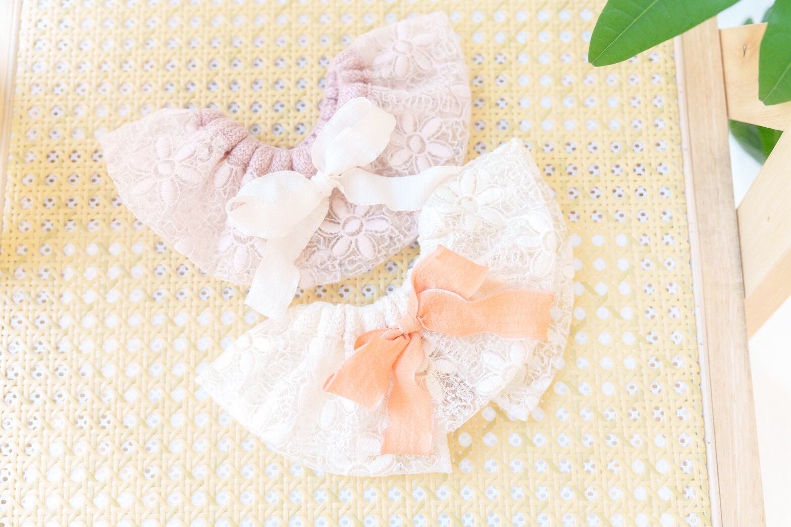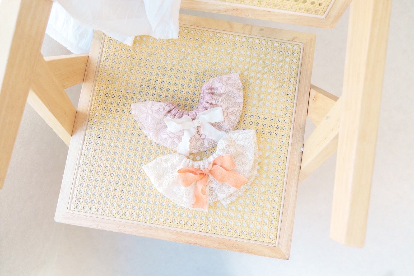 POPUPでも販売したレース生地とリボンの組み合わせで、お誕生日や記念日などにもおすすめのビブです♪