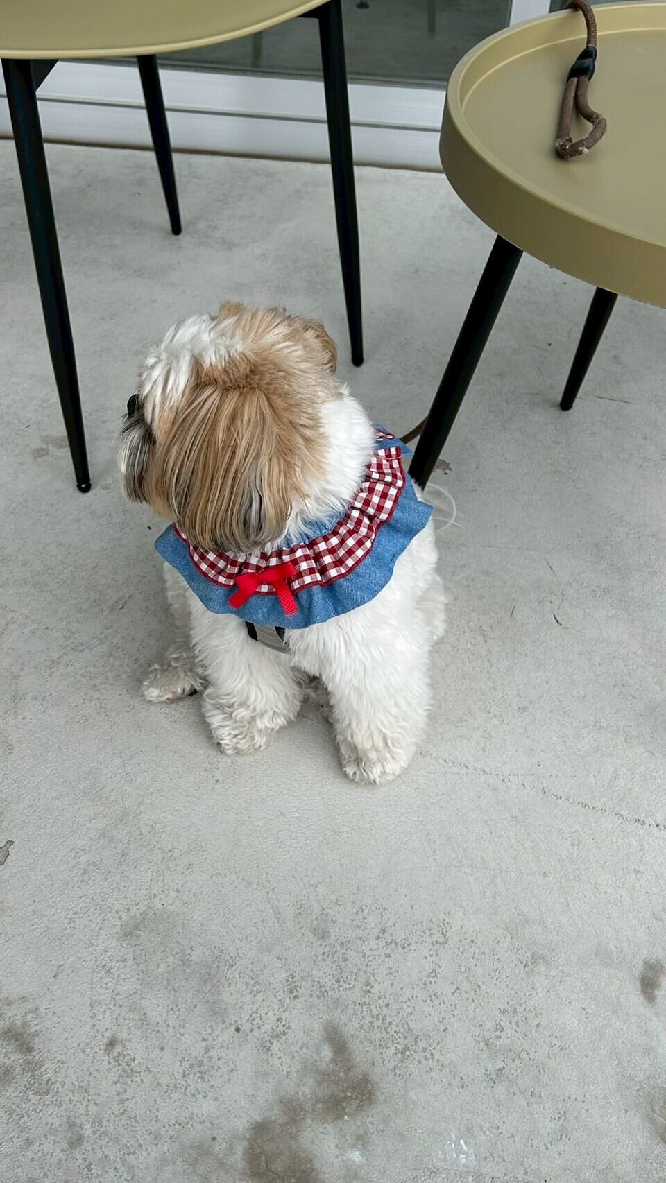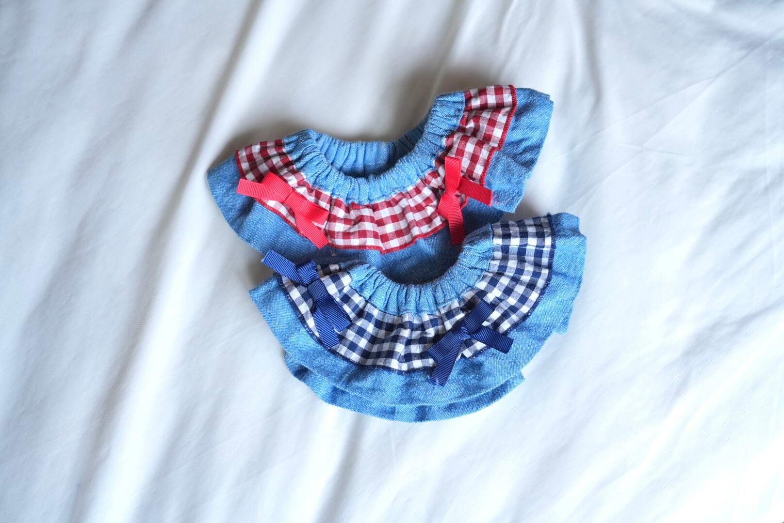 POPUPでも販売したデニム✖️ギンガムチェックのビブです
